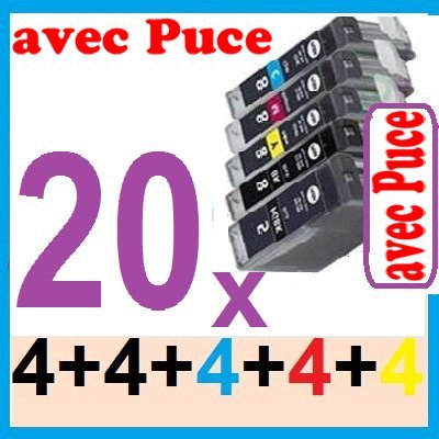 20_ccccc_44444_FR - Pack de 20 Cartouches d'Encre Compatibles pour imprimante avec Puce pour Canon PIXMA iP3600 iP4600 IP4700 MP540 MP550 MP560 MP620 MP630 MP640 MX859 MX860 MX870 MP980 MP990 PGI520BK CLI521BK CLI521C CLI521M CLI521Y Tintetec® description