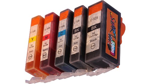 User reviews for Start - 1 Jeu = 5 Cartouches (avec puce) d'encre Compatible CHIP PGI CLI 525 526 - Noir (grande + petite), Cyan, Magenta, Yellow - cartrouches d'encre pour Canon Pixma IP 4850 4950 IX 6550 MG 5150 5250 5340 5350 6150 6250 8150 8240 8250 MX 715 884 885 895 - avec puce - mise en place immédiate de la cartouche d'encre sans adaptateur - pas d'étiquette à puce - comme dans le cas des cartouches d'origine - 100% Manomètre - 100% qualité - Cartouche de qualité - -